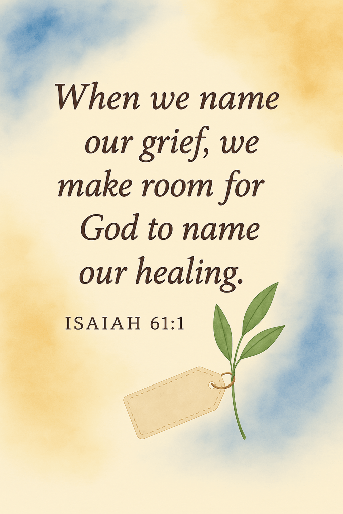 Naming our grief means giving language to the specific losses we’ve experienced—not just acknowledging that something painful happened, but identifying what was lost and how it affected us. It’s the difference between saying “I’m grieving” and saying, “I miss the way my dad used to pray with me before bed,” or “I lost the dream of my child growing up with their grandparent.”